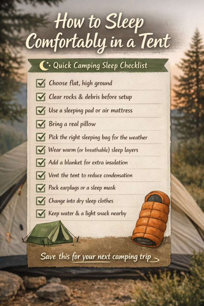Sleeping comfortably in a tent is less about toughness and more about preparation. The right sleeping surface, proper temperature control, a smart campsite choice, and a few comfort-focused habits can completely change your camping experience.